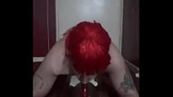 When wearing makeup, a bisexual sissy puts her ass to her mouth.