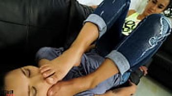 Foot licking, hand and foot cuffs, and bondage with my friend's mother