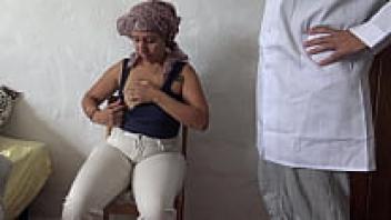 In his London clinic, a perverted British doctor examines an elderly woman.