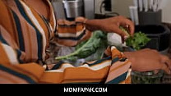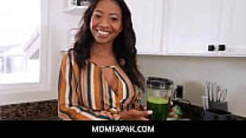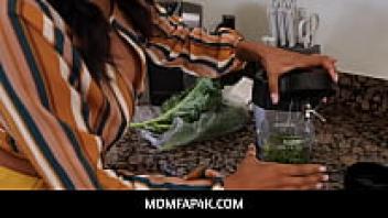 Ebony MILF fitness stepmother, MomFap4K Stepsons' large white dick is tasted by September Reign.