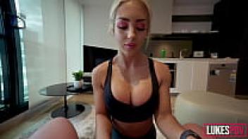Big Boobs Fitness Model is Oiled Up and Covered with Cum