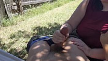 Cumshot Outdoor handjob during the summer, part 2
