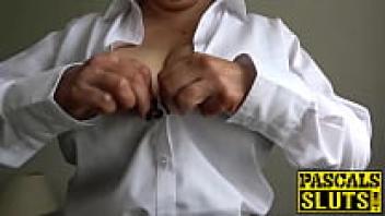 Hot milf flashes her enormous tits.