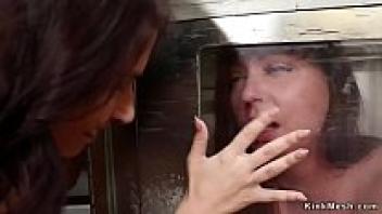 Lesbian slaves who are bound and devour butt