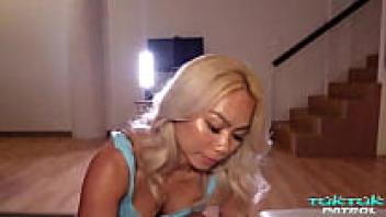 A Thai girl on TukTukPatrol encircles a large foreign cock with her legs.