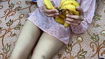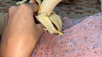 Real horny pussy that adores bananas and large, hard dicks