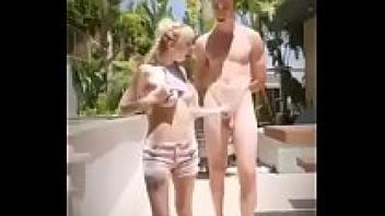 By the pool, a sexy big ass bikini teen is showing public affection.