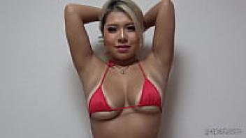 After a seductive striptease, gorgeous busty model Harley Rae flashes her adorable pussy.