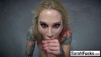 Using a toy, hot blonde MILF Sarah works her juicy pussy.