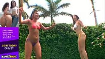 South Beach is the location of the sexy babes who are taking a shower to wash off the sand.