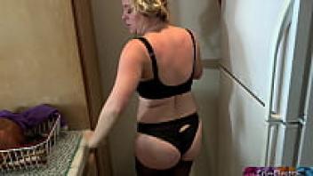 BEFORE BREAKFAST SEX WITH STEPSON, A BEAUTIFUL STEPMOTHER MASTURBATES ON THE KITCHEN TABLE
