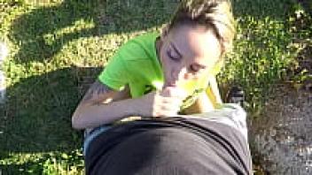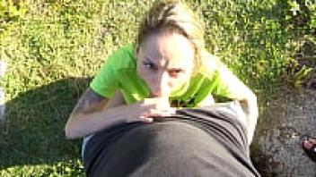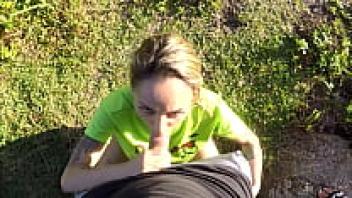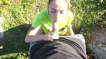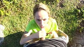 Anxious 18-year-old Allina blowjob and handjob combo with big, glazed, and coated tits