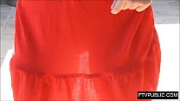 A self-reliant woman. Jeny Smith in public wearing pantyhose without underwear