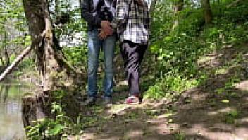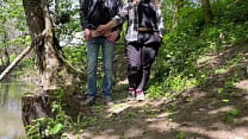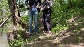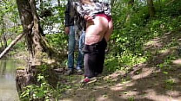 Outside, the obese mother-in-law pooped through her new underwear while spreading her legs wide.
