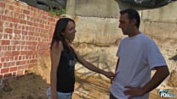 In the woods, a sexy and thin brunette had her first sexual experience in public.