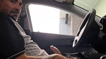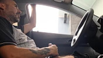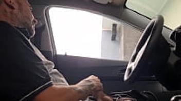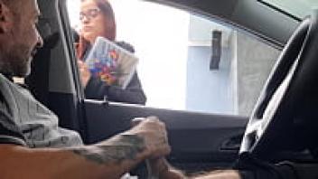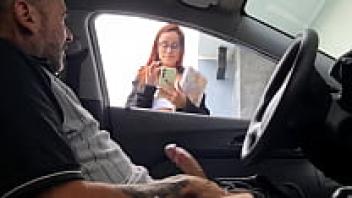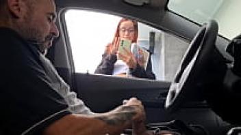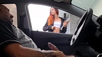 Blonde, lovely teen girl Alexis Crystal is undressing in a car on the route to public.