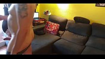 While family is upstairs, naughty Colombian TikToker La Paisa likes her neighbor in the kitchen! On Natural Big Boobs, Cumshot