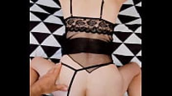 Pov's doggy-style romance with his trim wife wearing a transparent bodysuit