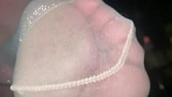 Wearing nylon pantyhose, the Canadian girl Lena Spanks is shown enjoying her pussy while wearing them.