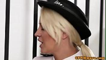 Naked inmates are dominated by CFNM police chicks.