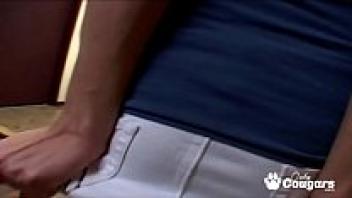 Granny with a large breast puts a firm cock in her mouth and pussy.