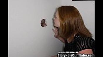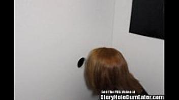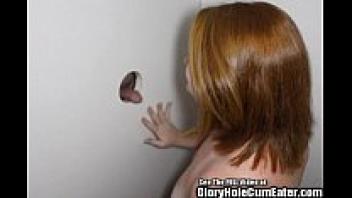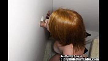 In the gloryhole, Redhead Cherry has a deep affection for strange males.