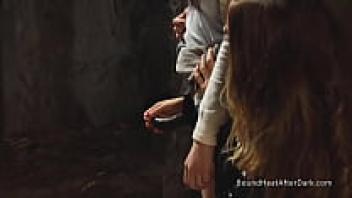 Lesbian Slave Touched and Tied With Pale White, Large Natural Boobs