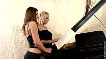 Near the piano, there is fingering and pussy licking.