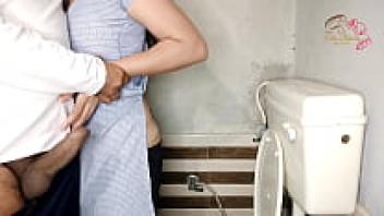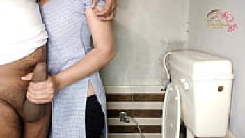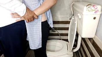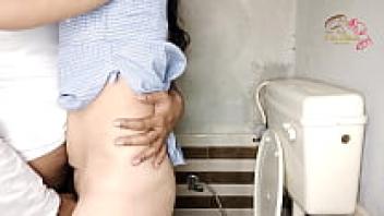 A girlfriend from school had sex in the restroom.