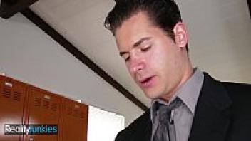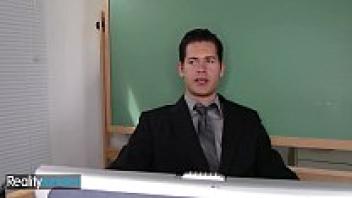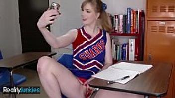 A perverted teacher adores a naive adolescent cheerleader wearing spectacles.