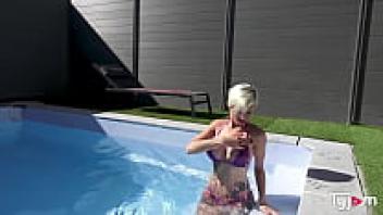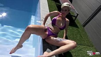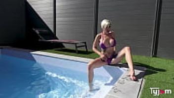 Large tits At the pool, Tanya Virago is engaging in intense sexual activity.