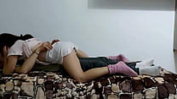 After school, a nerd lad is adored by his attractive classmate on a college sex tape.