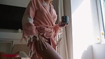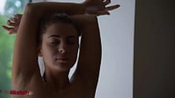 In the restroom, the Russian girl adores herself.