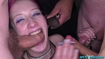 Lesbians with strapons have facials at Bukkake Gloryhole.