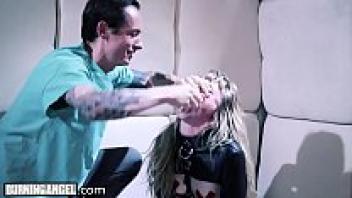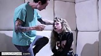 Nympho, an Emo teen, is rough-loved in a padded cell.
