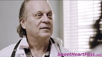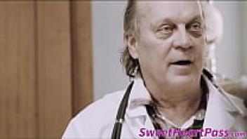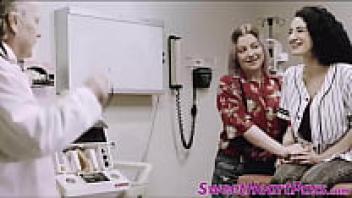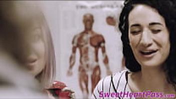 The dyke doctor unexpectedly licks Teenie's pussy.