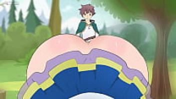 God's blessing on this wonderful world! Aqua wore a skirt that was too short to entice Kazuma.