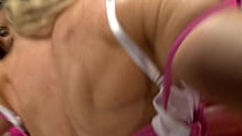 After roug sex, a horny girl wearing a fishnet gets a cumshot while wearing latex high heels.