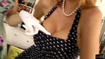 A filthy Finnish mother engaging in public striptease after masturbating at home