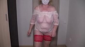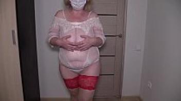 Striptease in a sex conversation with a stranger. A mature bbw shakes their large buttocks and natural breasts close to the webcam. A housewife's homemade obsession.