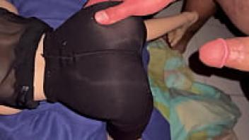 For the first time, a young girl tries a thick cock in her ass while wearing leggings with a flawless ass. -pov anal