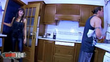 A young French adolescent who is slim and attractive likes to have a big cock in the kitchen.
