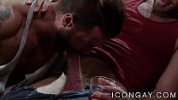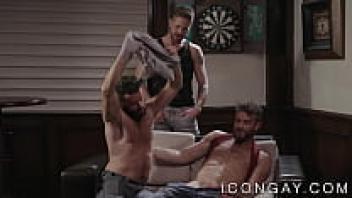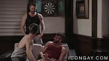 Two attractive and hairy gay men spiroasted a cute and attractive gay man.