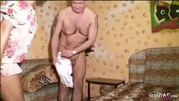 At an amateur gangbang party, a slender German adolescent was repeatedly inseminated.
