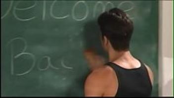 A horny worker uses a drill to break a table, and then he inserts his cock into the pussy of a young student who is tanning in the classroom.