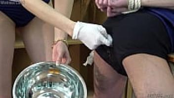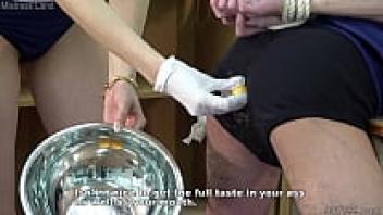 CFNM in Japanese Femdom Risa observes the ejaculation of her slave.