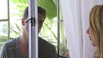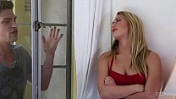 Smoking and side-ways love are ways for the nervous blonde milf with fake tits to decompress.