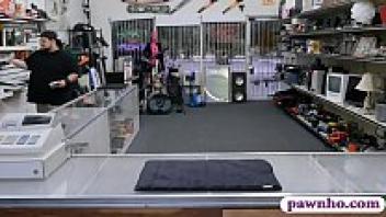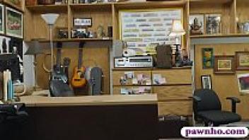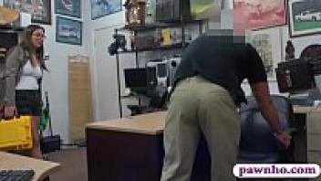 A gorgeous woman wearing spectacles is scolded by the pawn keeper.