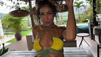 My enormous cock is hitting her pussy, and the gorgeous Brazilian with the ideal body wants to feel it.