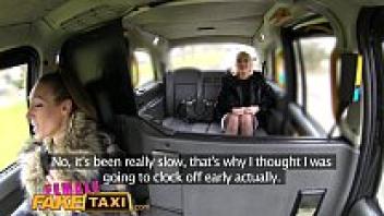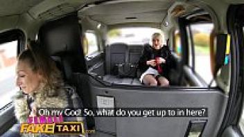 The dildo of female fake taxi drivers causes lesbian orgasms to squirt in the vehicle.